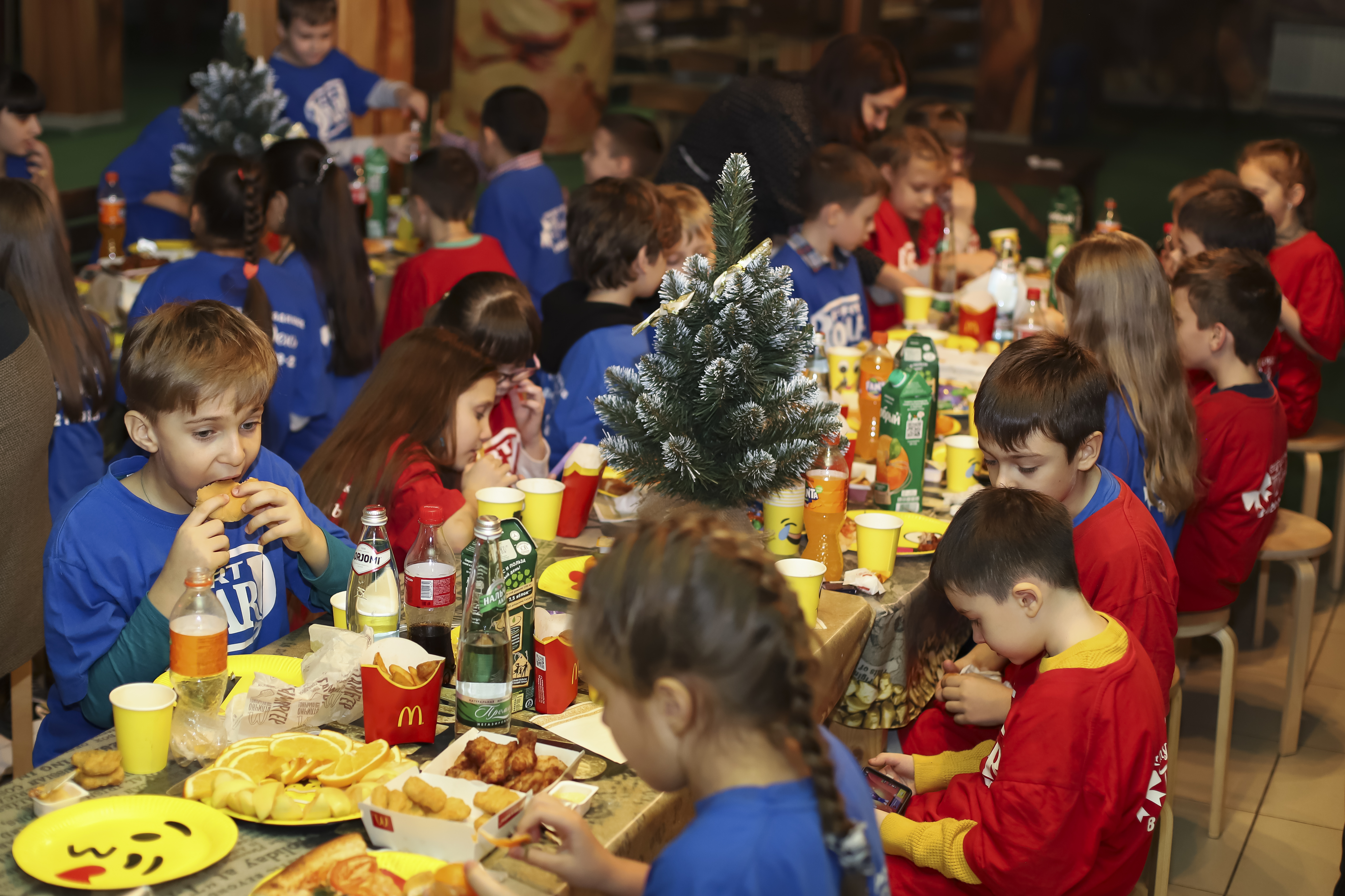 После активных игр набираемся сил и подкрепляемся в банкетном зале.